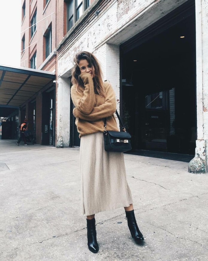 Стильный зимний образ с юбкой и свитером