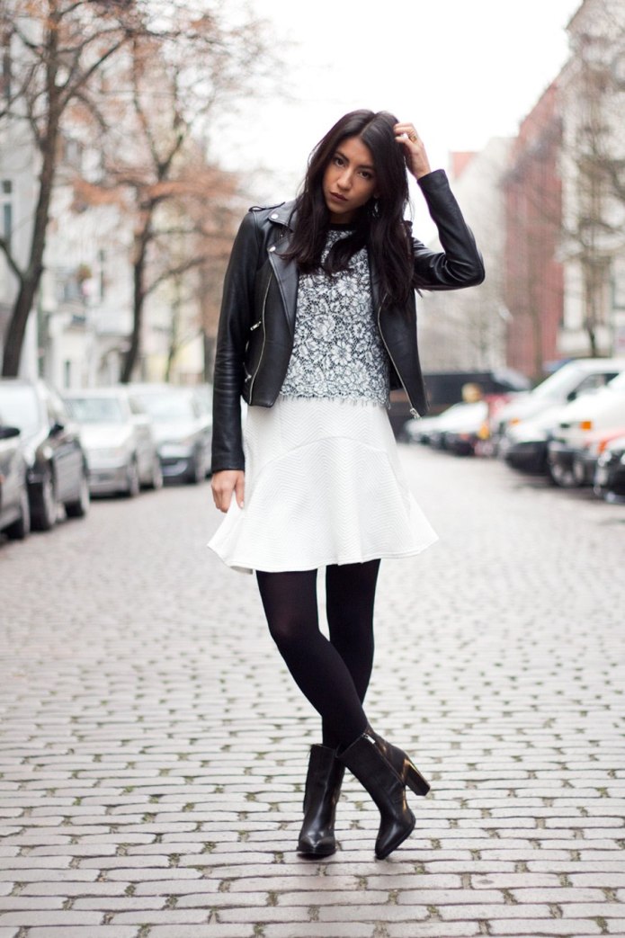 Белое платье с черными колготками