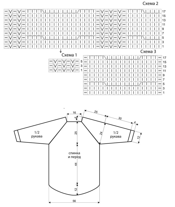 Схема кофты реглан снизу