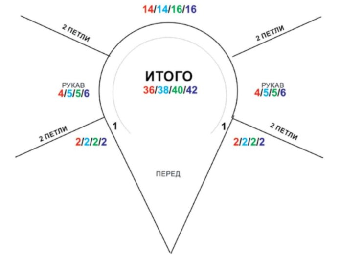 Схемы расчета петель для вязания реглана сверху спицами