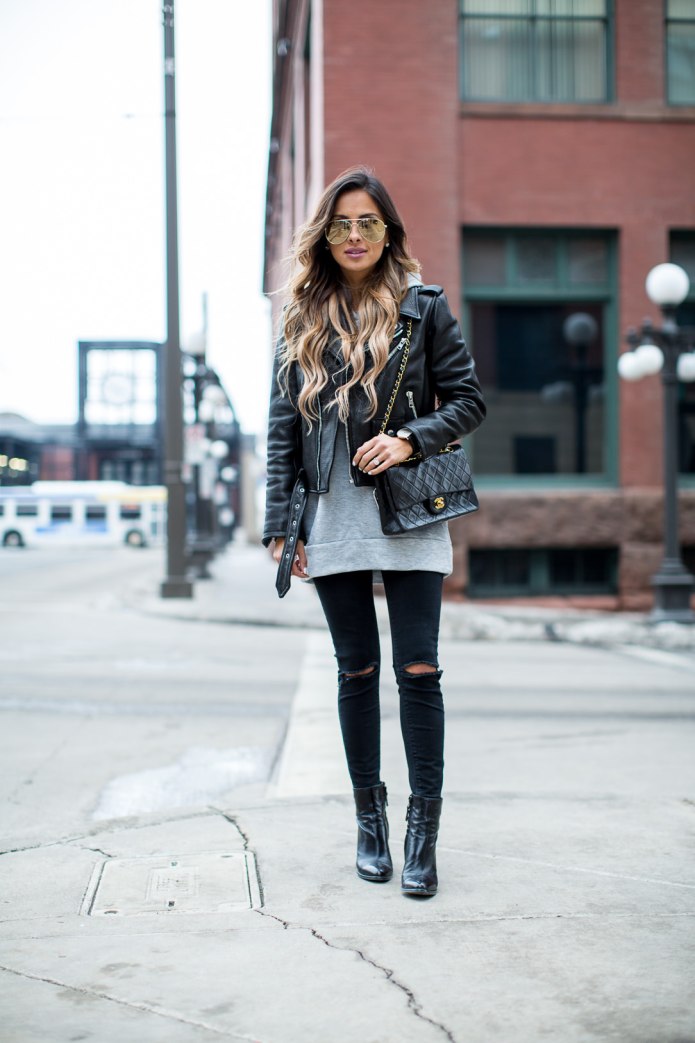 Худи и кожаная куртка женская
