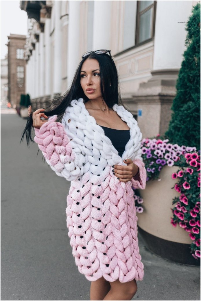 Объемные кардиганы крупной вязки