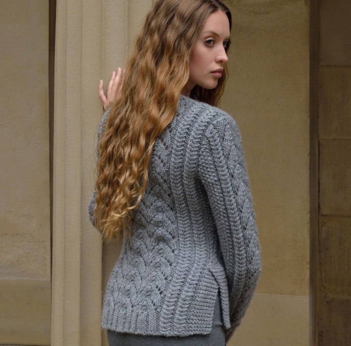Свитер с удлиненной спинкой спицами