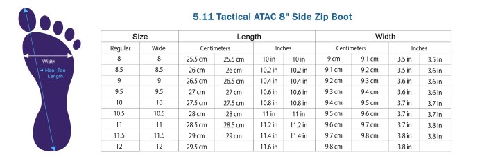 Таблица размеров стопы