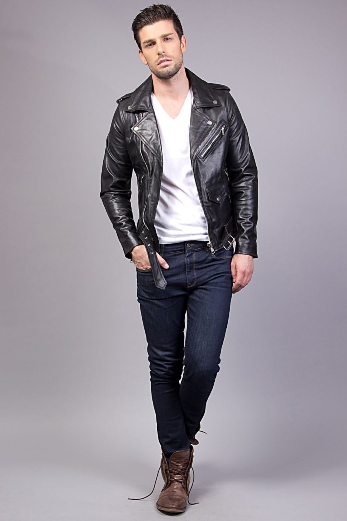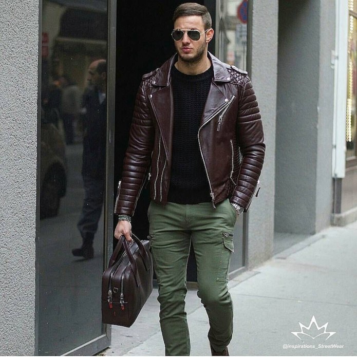 Мужской стиль с кожаной курткой