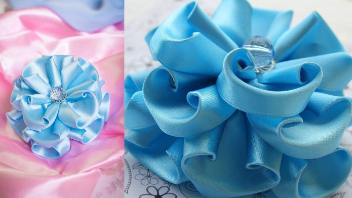 Пышные цветы из атласных лент