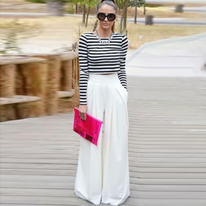 Белые широкие брюки с чем носить (65 фото)