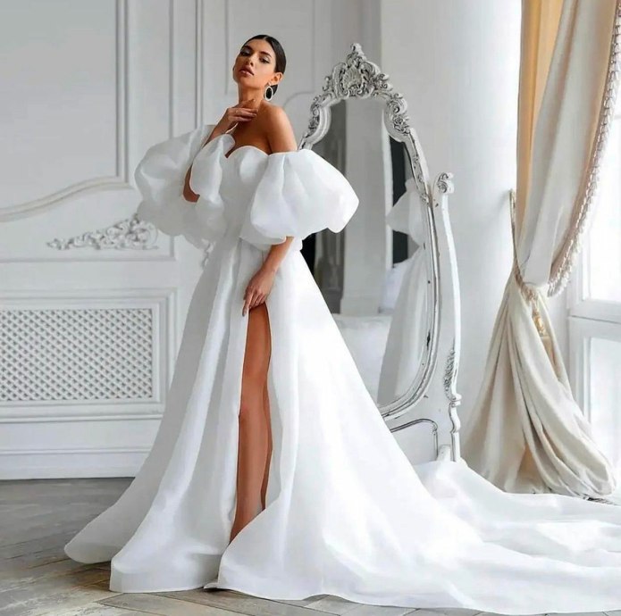 Свадебное платье с рукавами фонариками