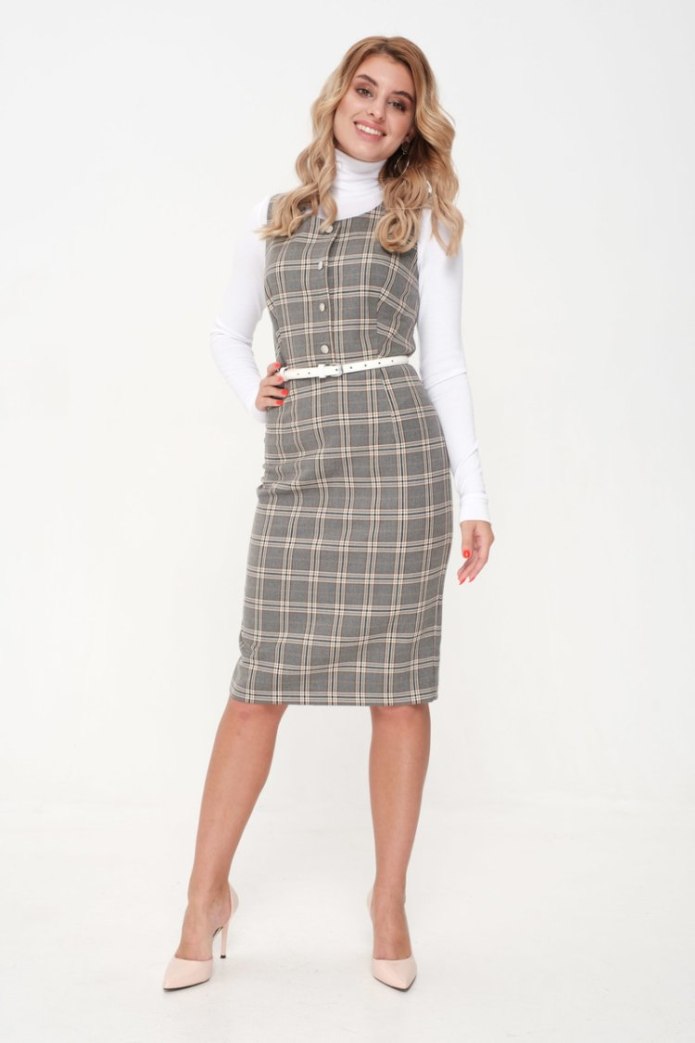 Сарафан в клетку с водолазкой