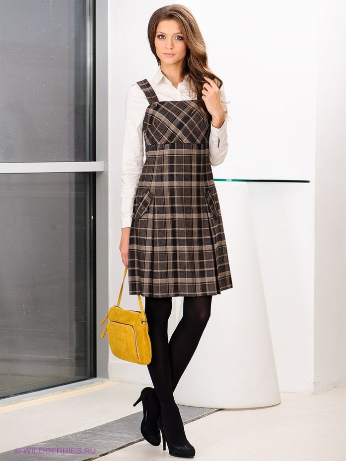 Сарафан в клетку с чем носить (74 фото)