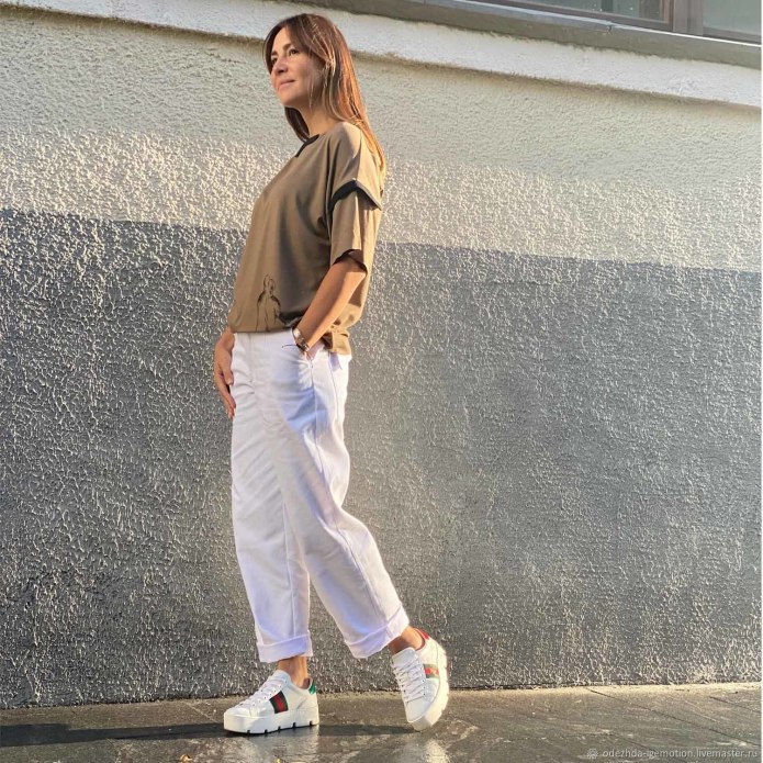 Белая футболка с джинсами
