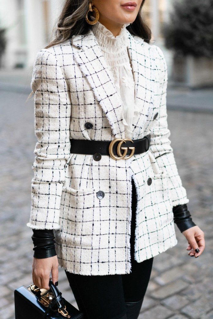 Твидовый пиджак стрит стайл