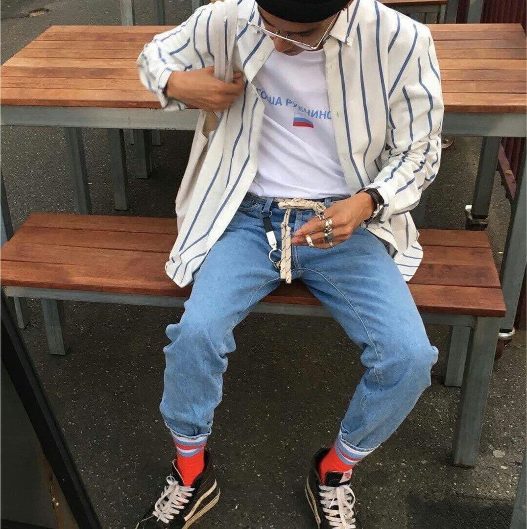 Джинсы заправленные в носки