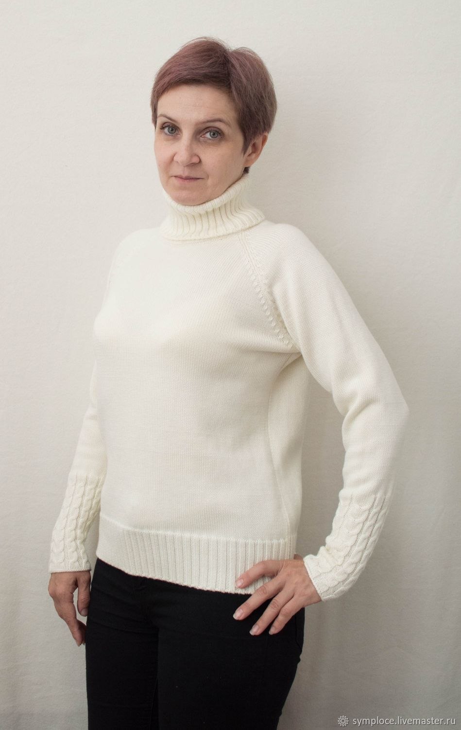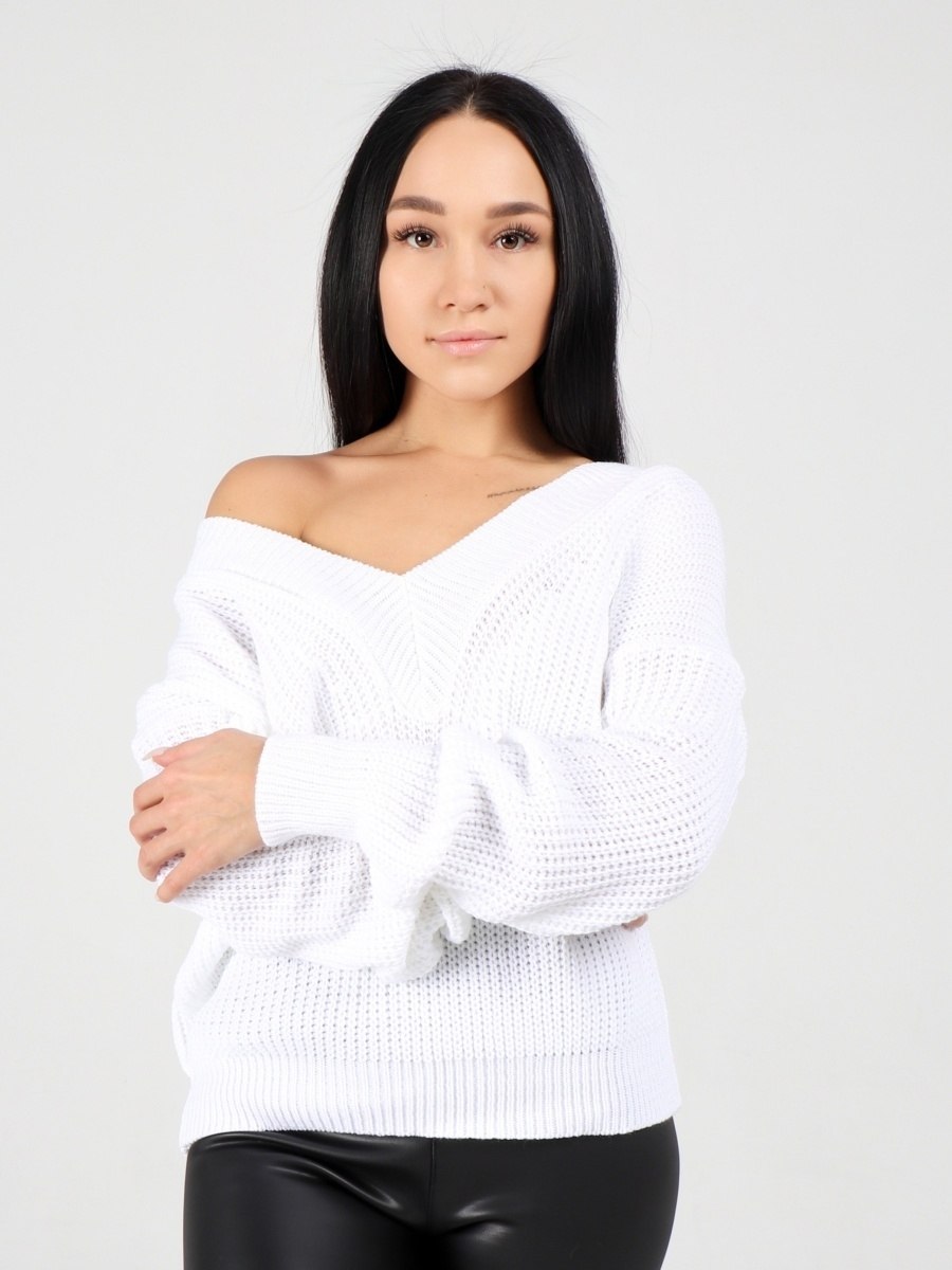 Белый вязаный свитер женский