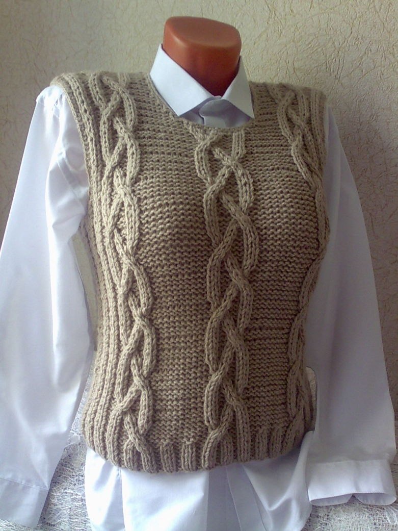 Теплый вязаный жилет