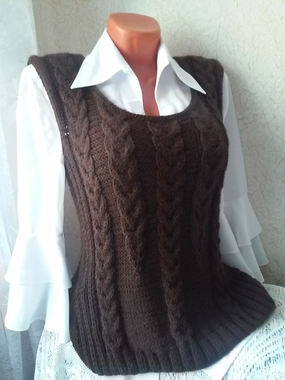 Необычный вязаный жилет