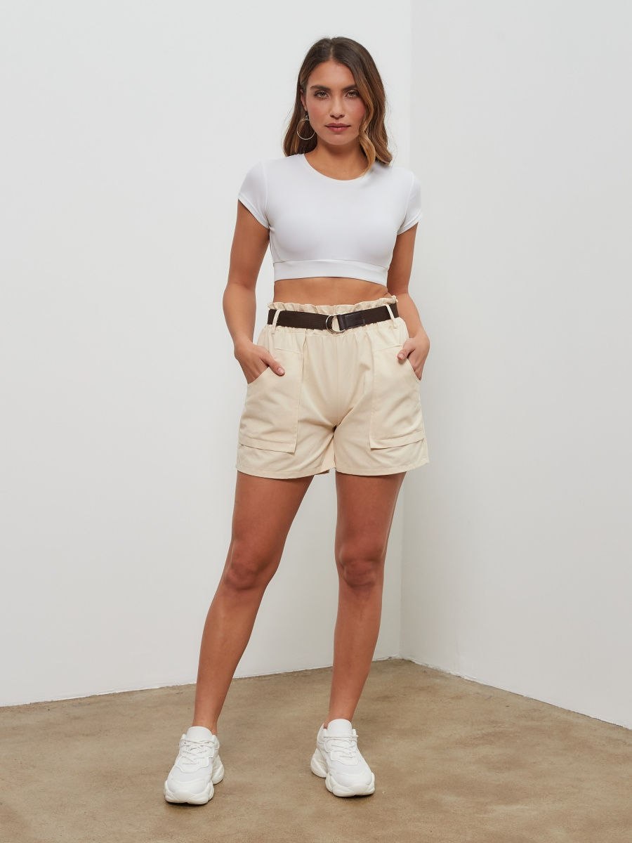 Бежевые шорты на резинке