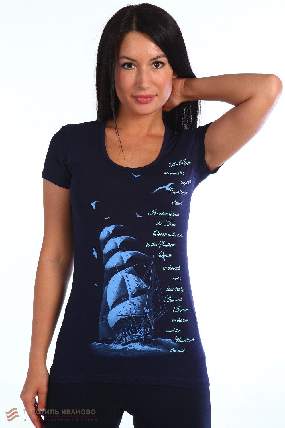Темно синяя футболка женская