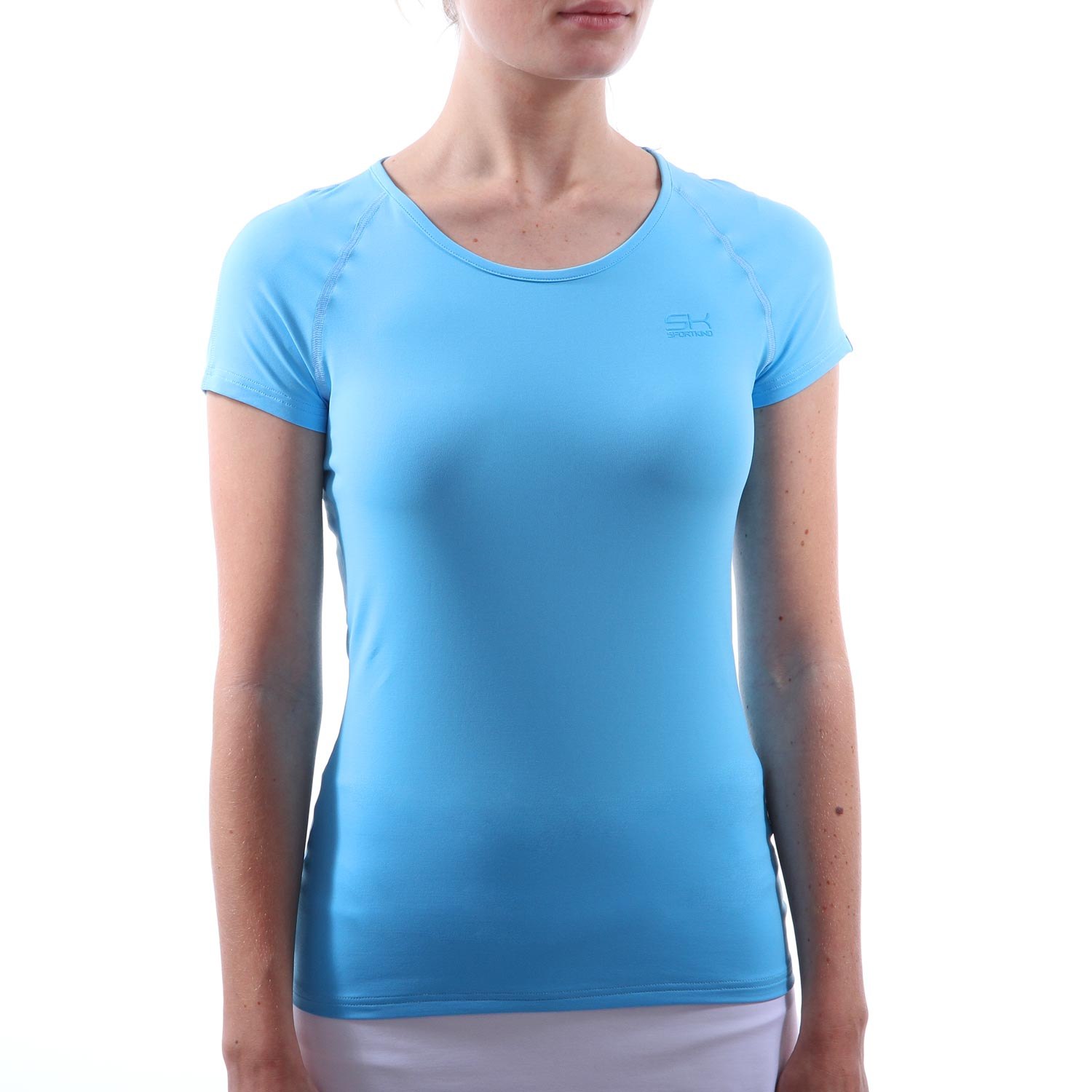 Голубая футболка женская (38 фото)