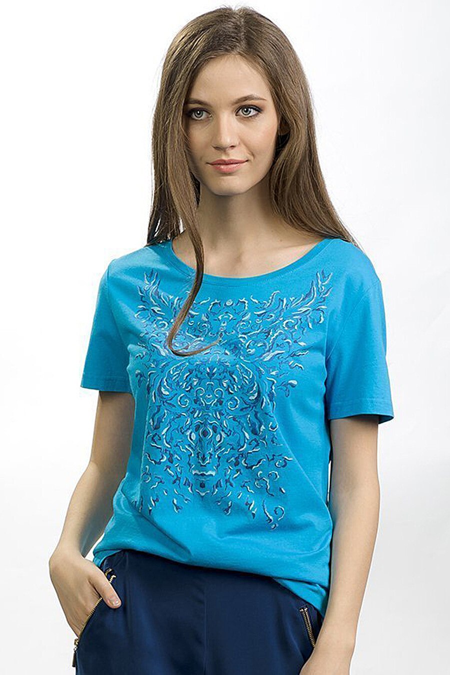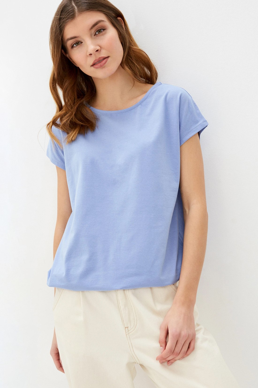Голубая футболка женская модная