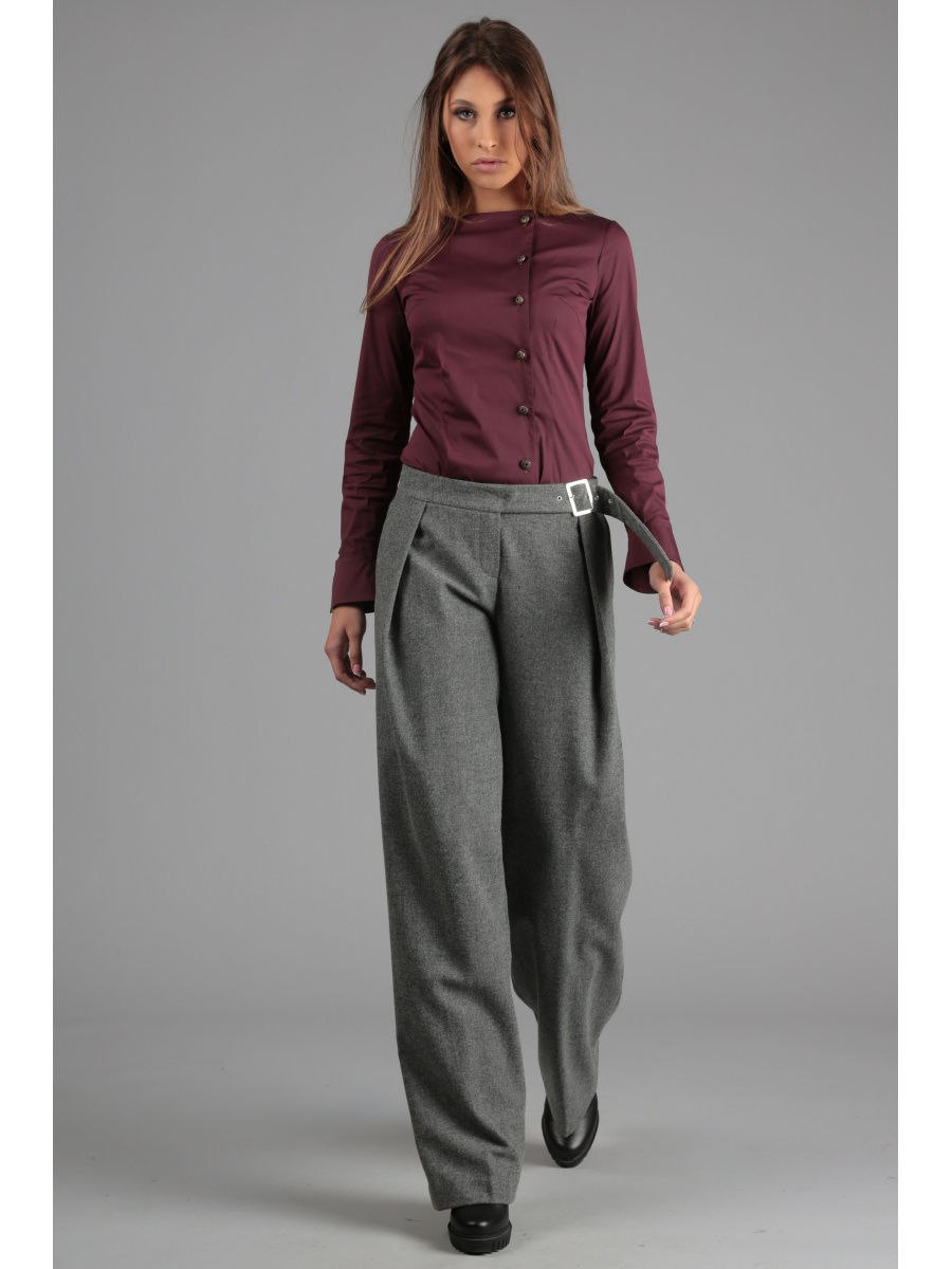 Серые широкие брюки женские