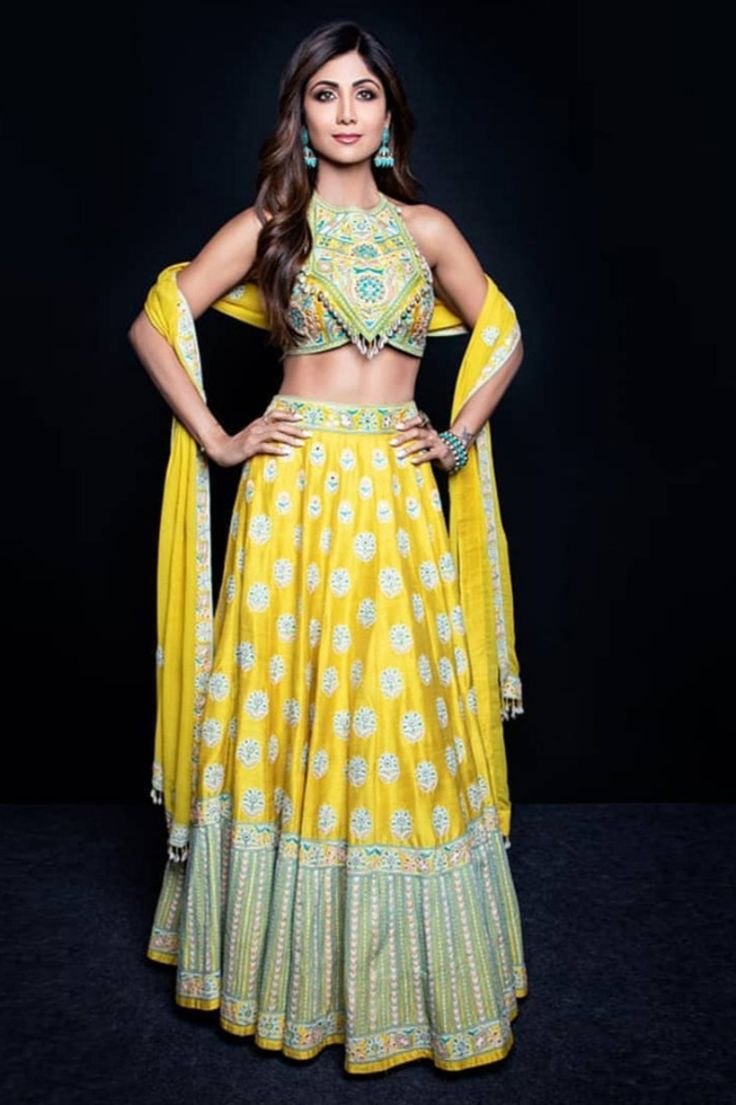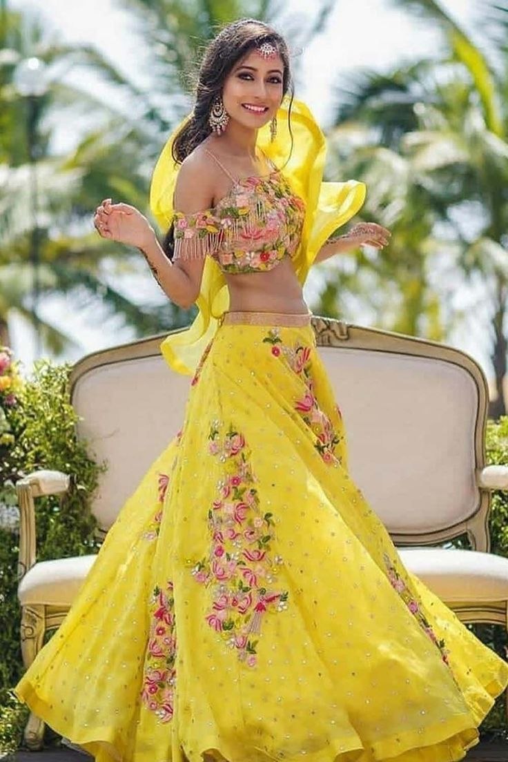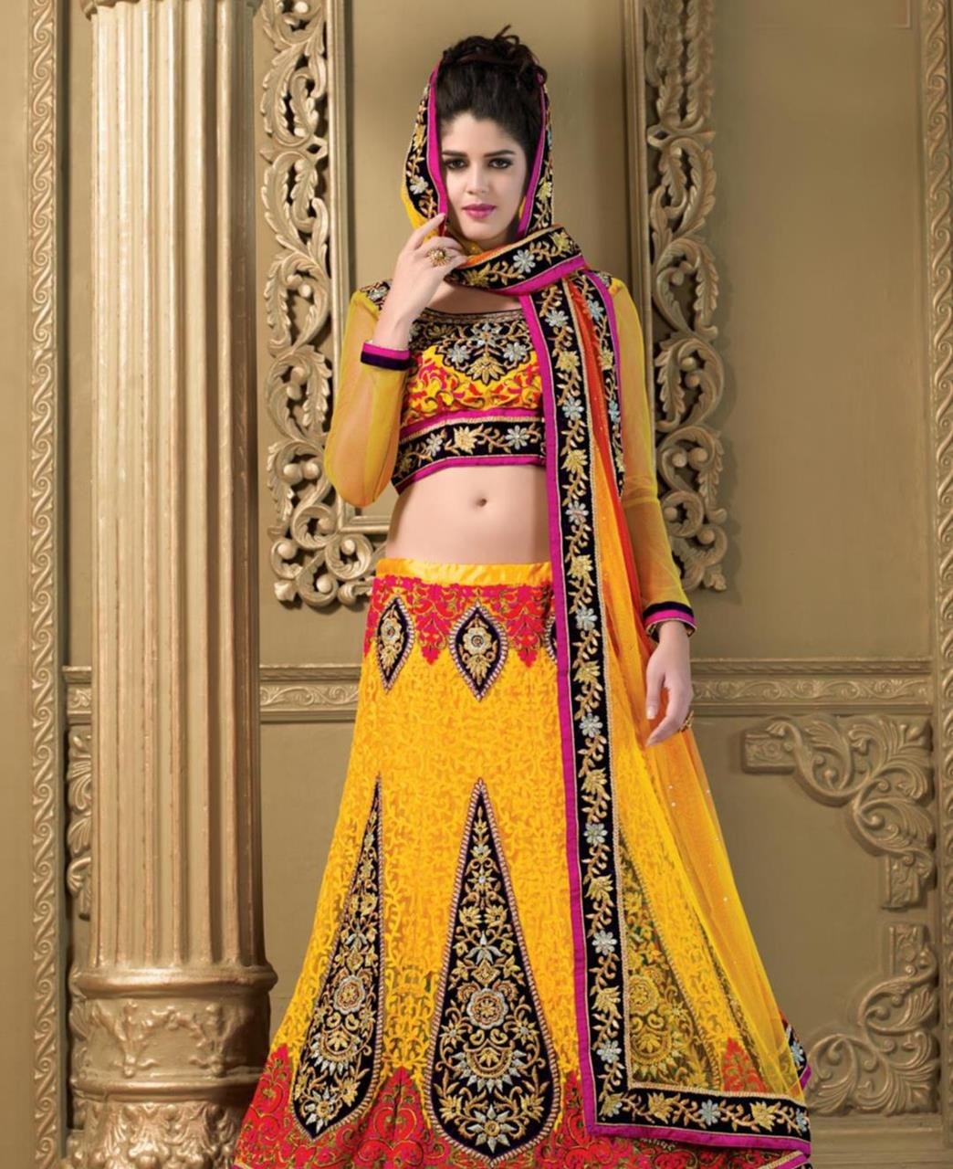 Свадебное индийское платье Lehenga Yellow