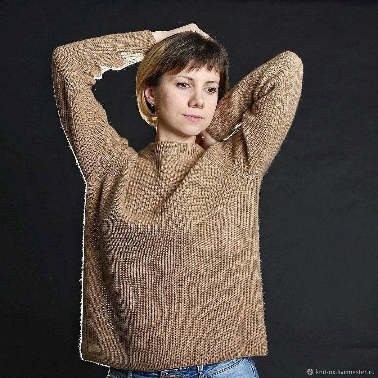 Стильный кашемировый пуловер кэмел