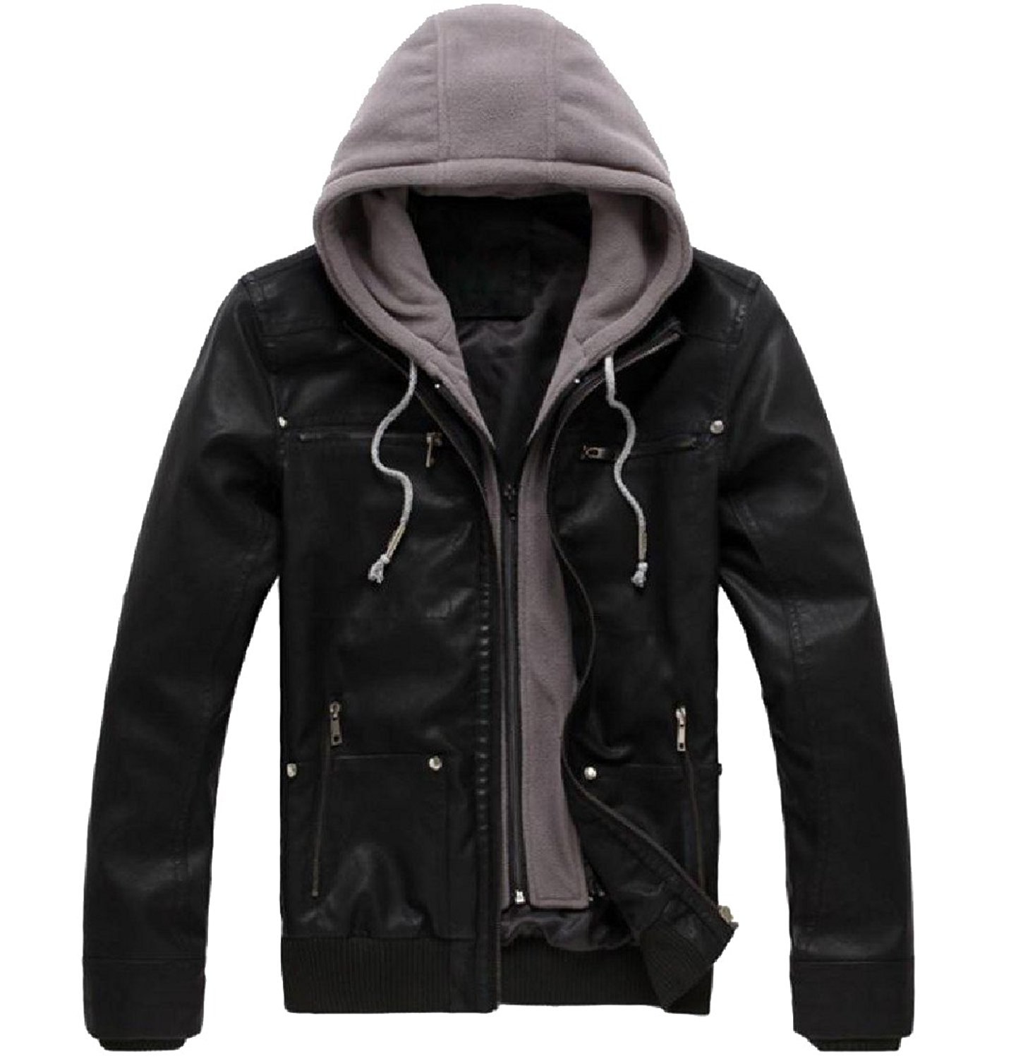 Куртка кожаная с капюшоном CVK brand 19856