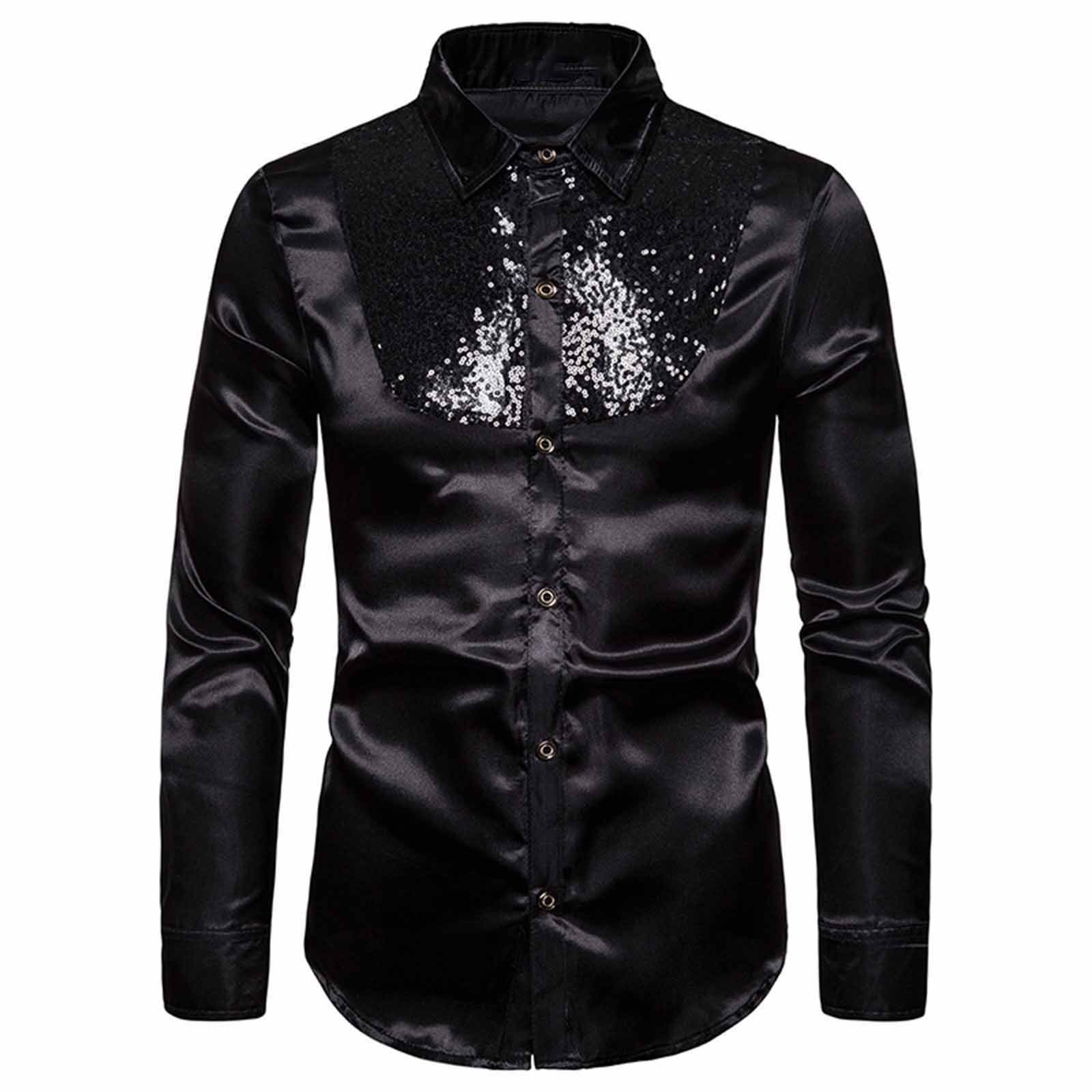 Черная атласная рубашка мужская