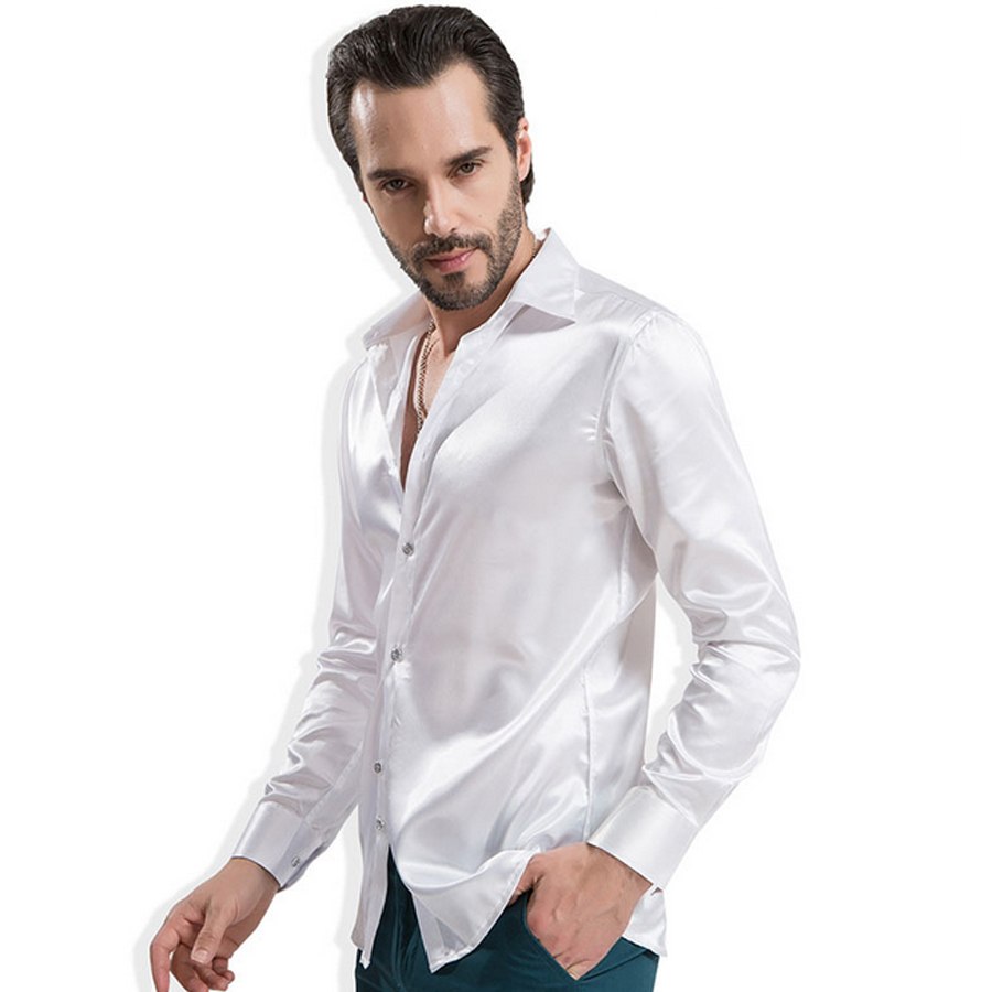 Мужские шелковые рубашки с длинным рукавом