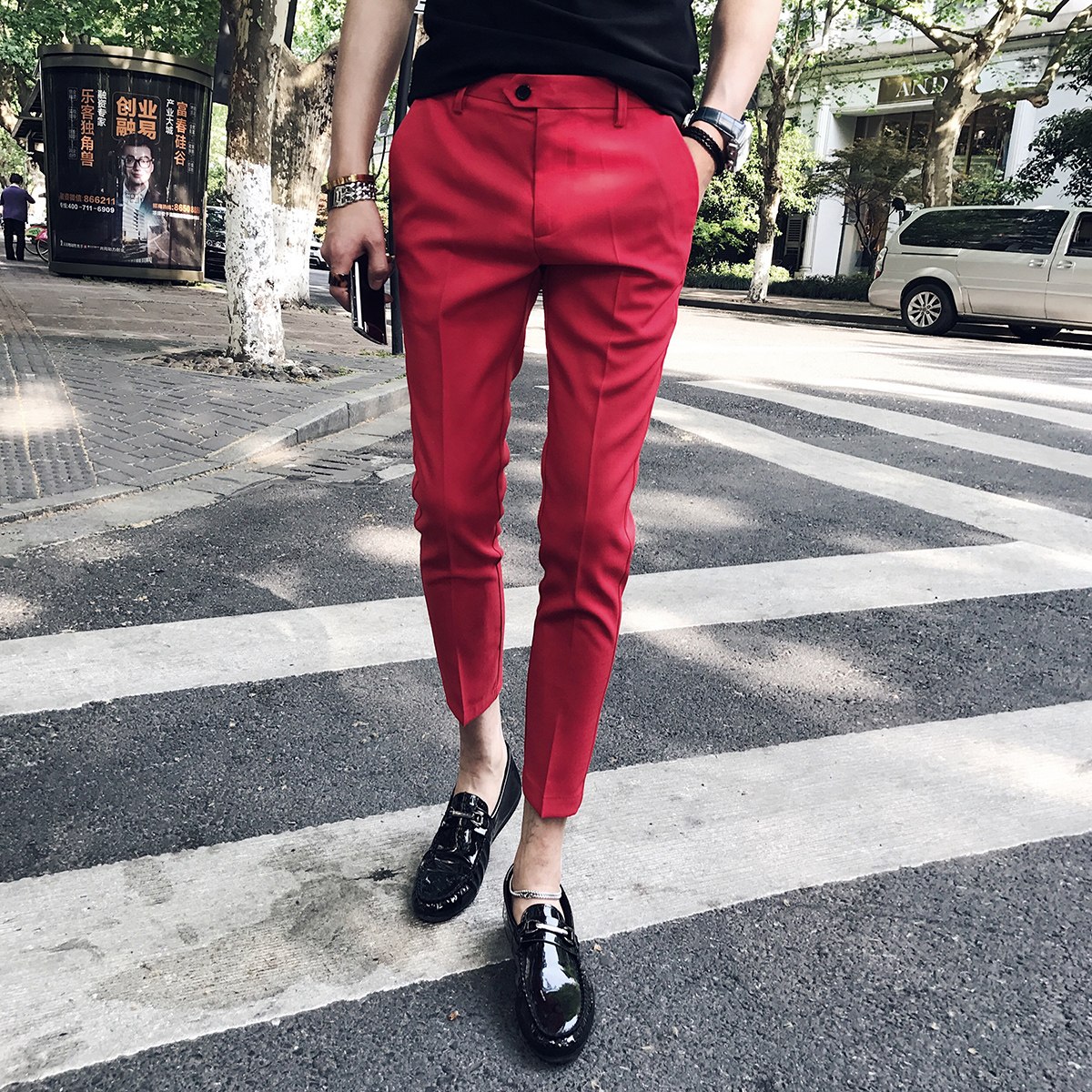 Красные брюки до щиколотки