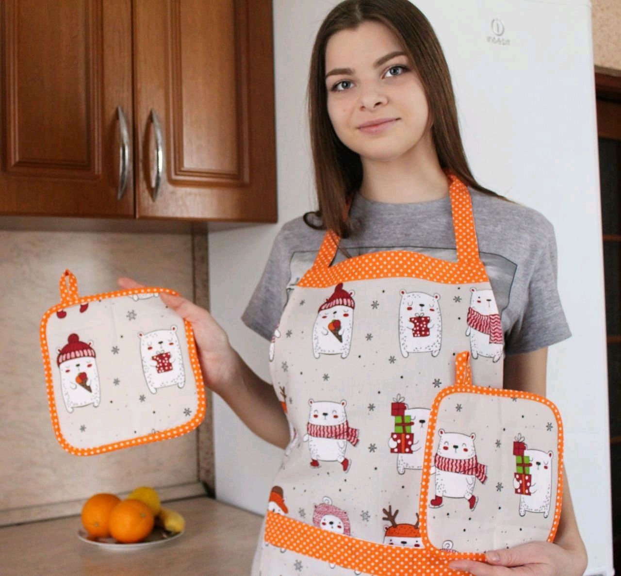 Абрикосовый фартук с принтом (38 фото)