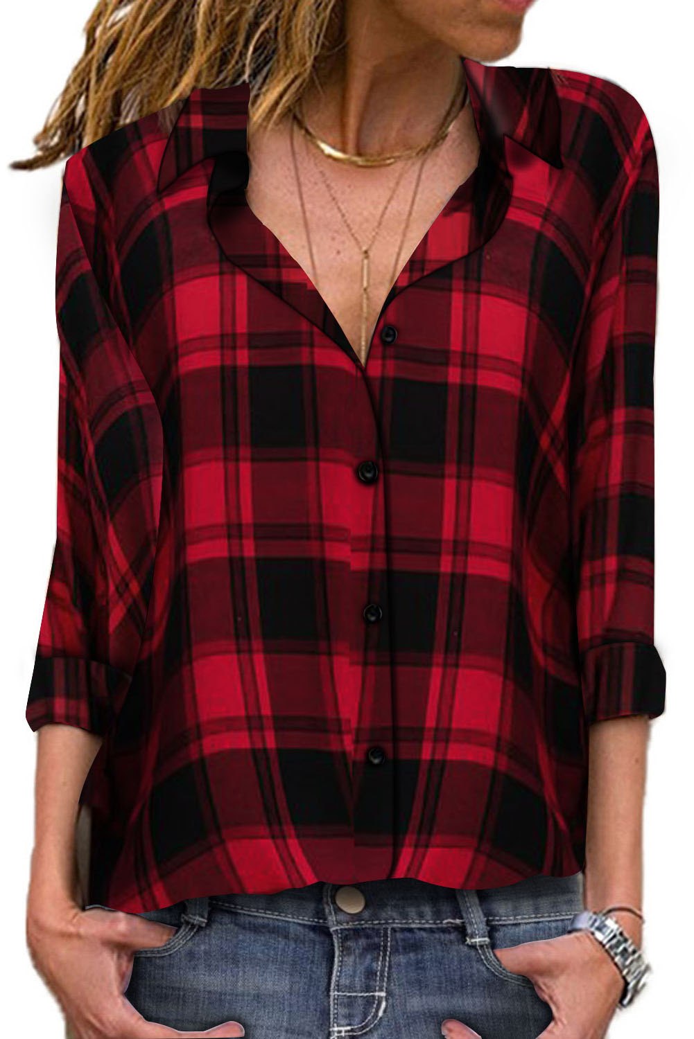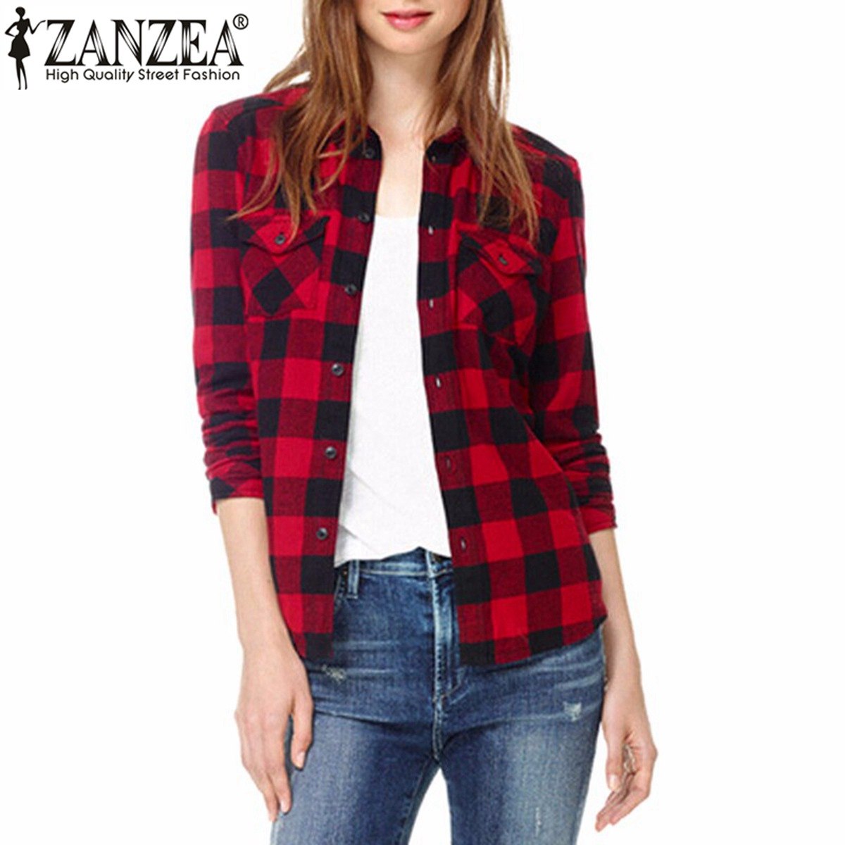 Красная клетчатая рубашка женская