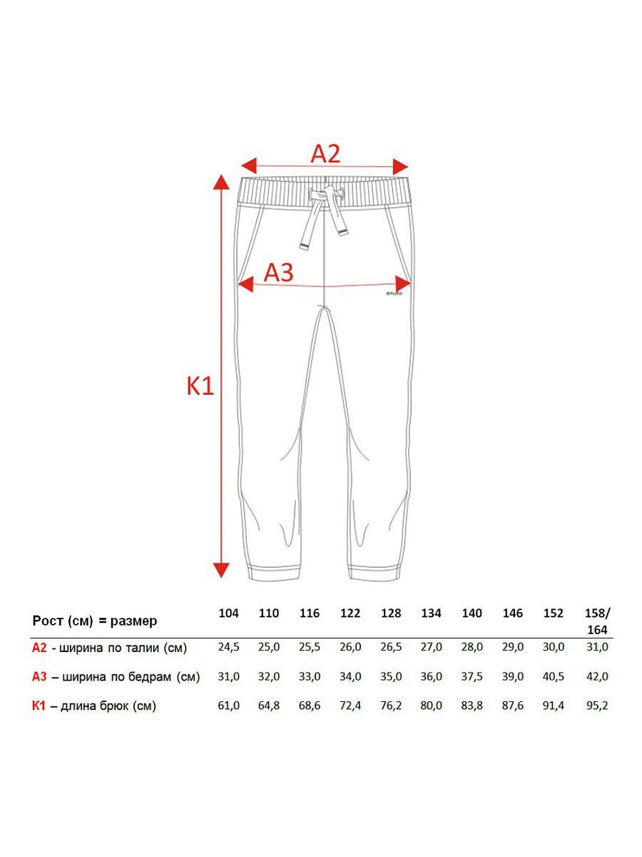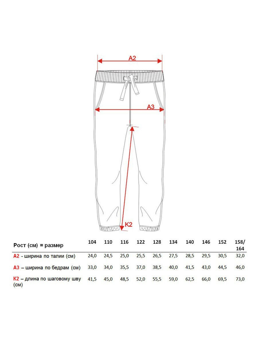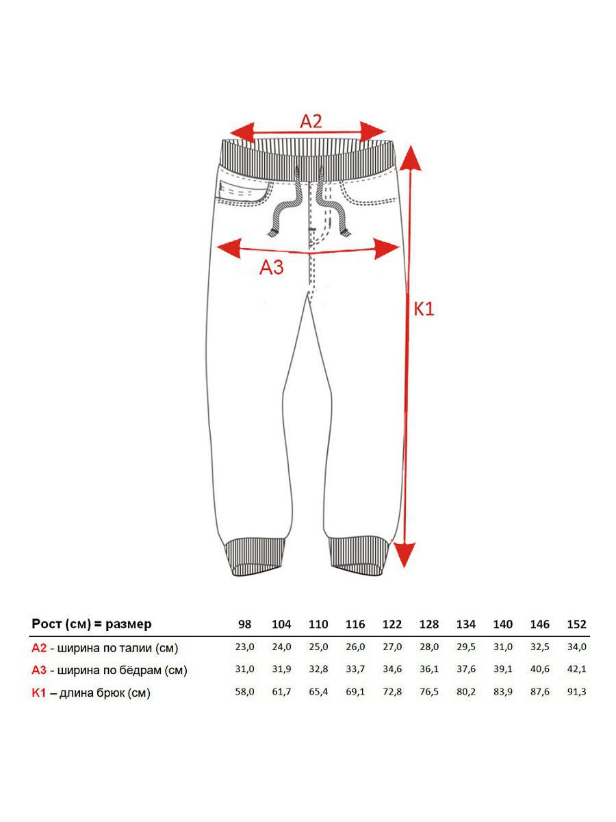 Брюки 110 для мальчика Размерная сетка