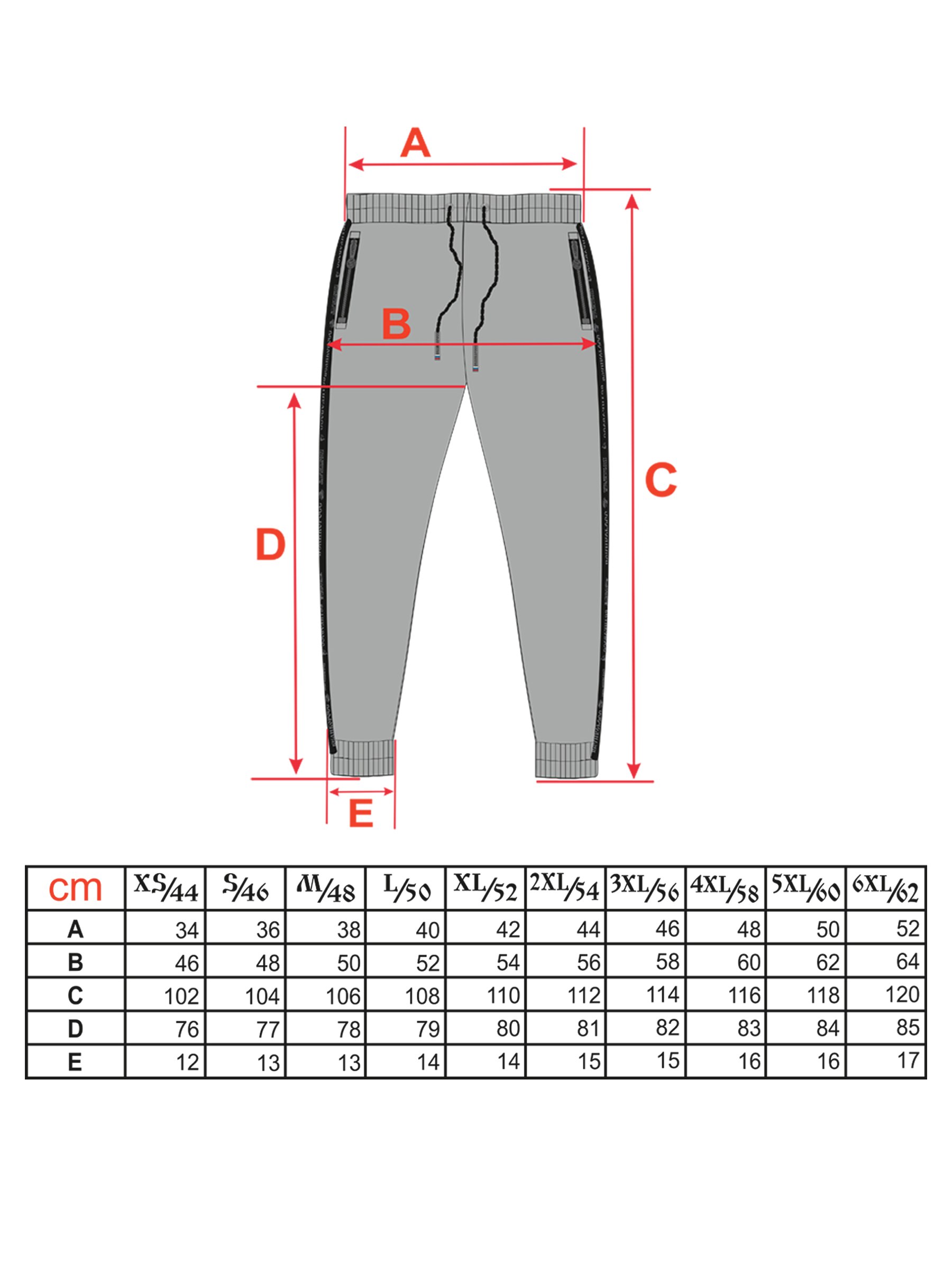 Размерная таблица мужских джоггеров