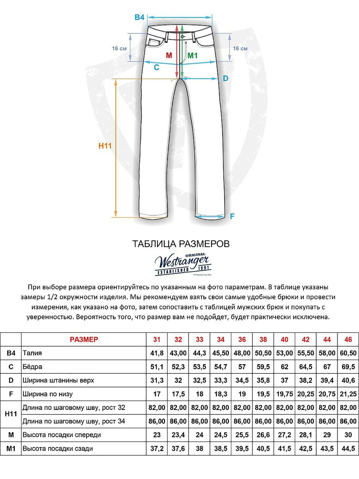 Размерная сетка штанов для мужчин джинсы