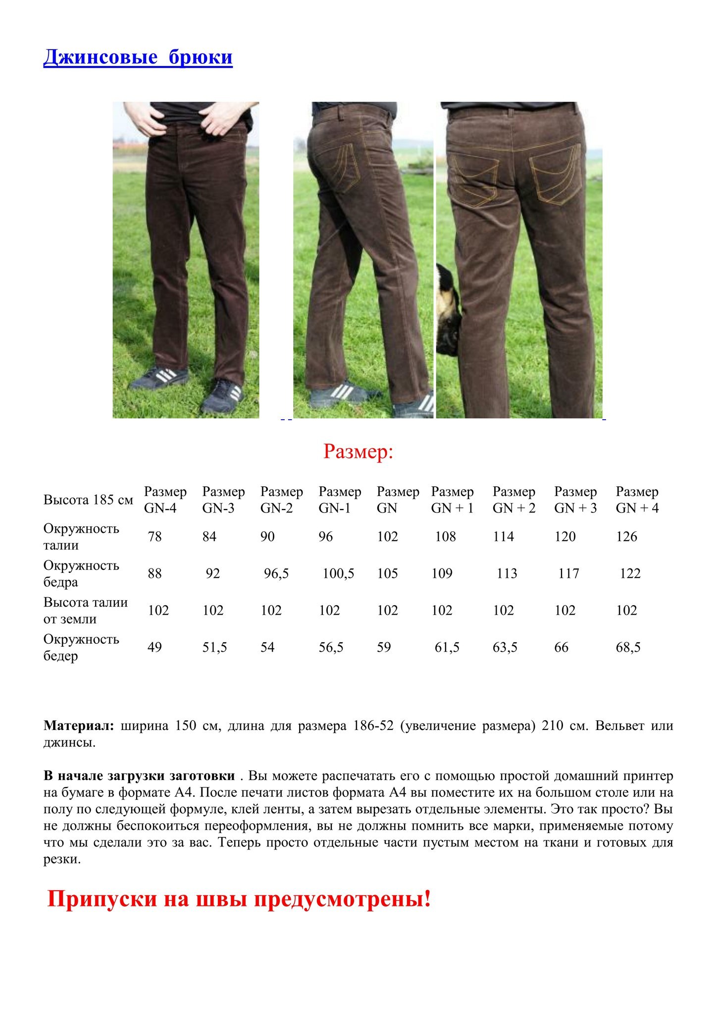 Лекало мужских джинс pdf