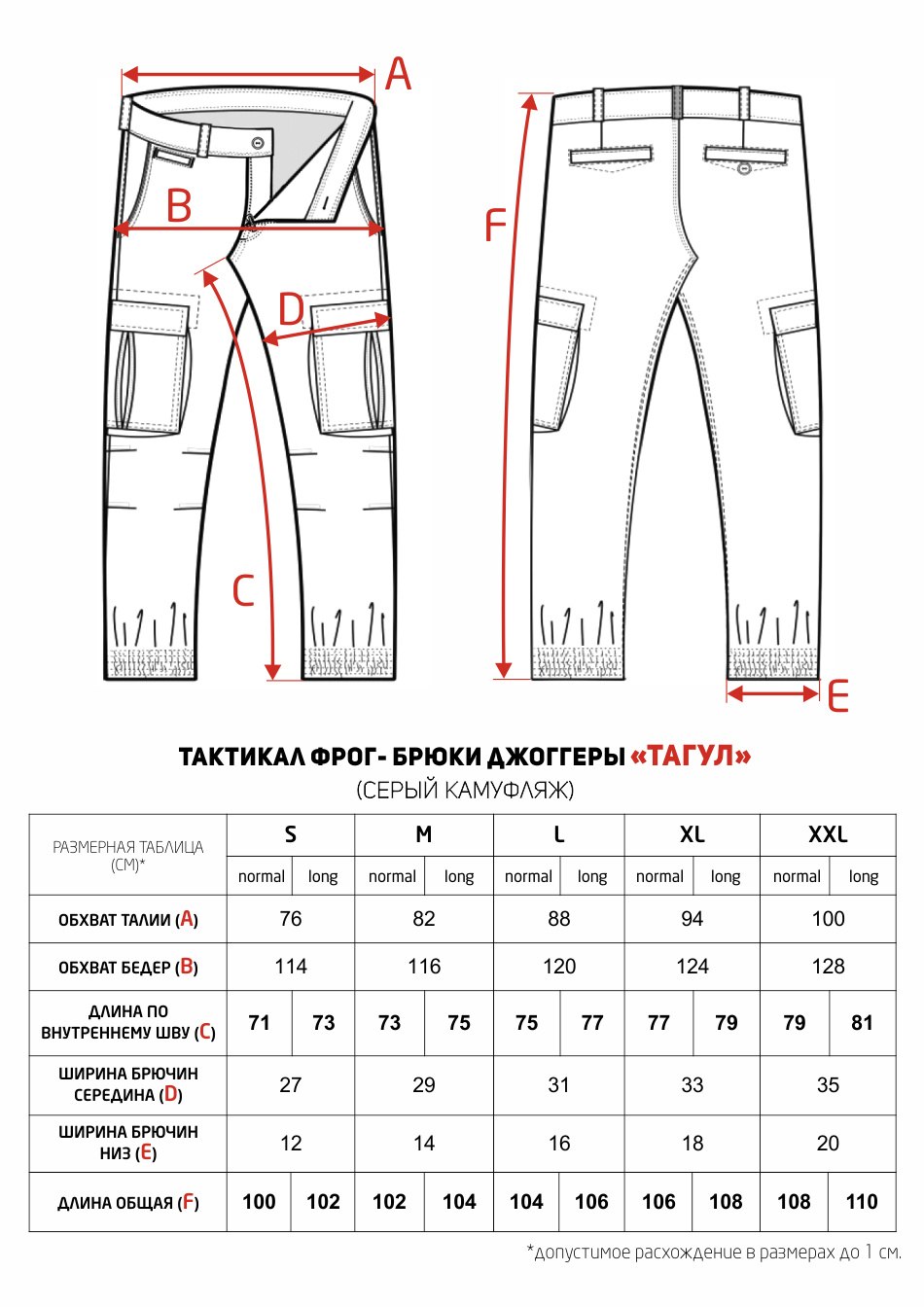 Размерная сетка штанов штанов