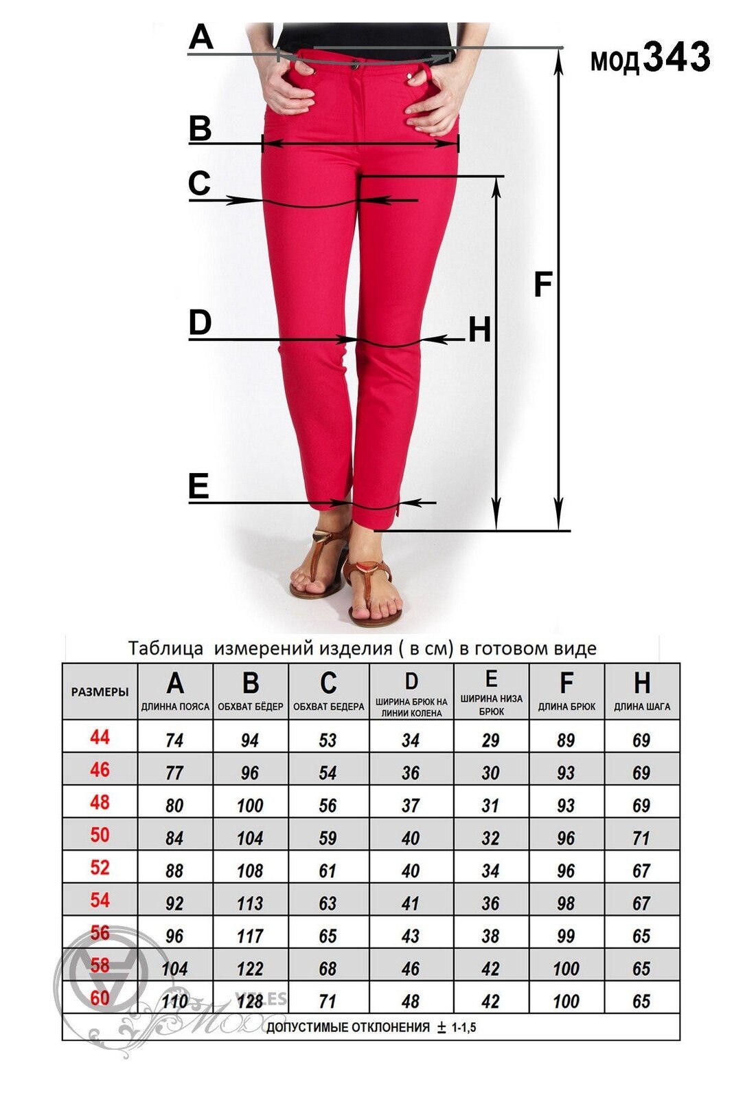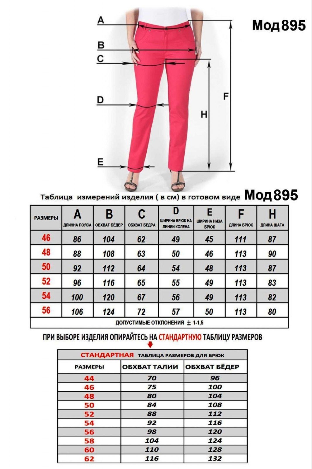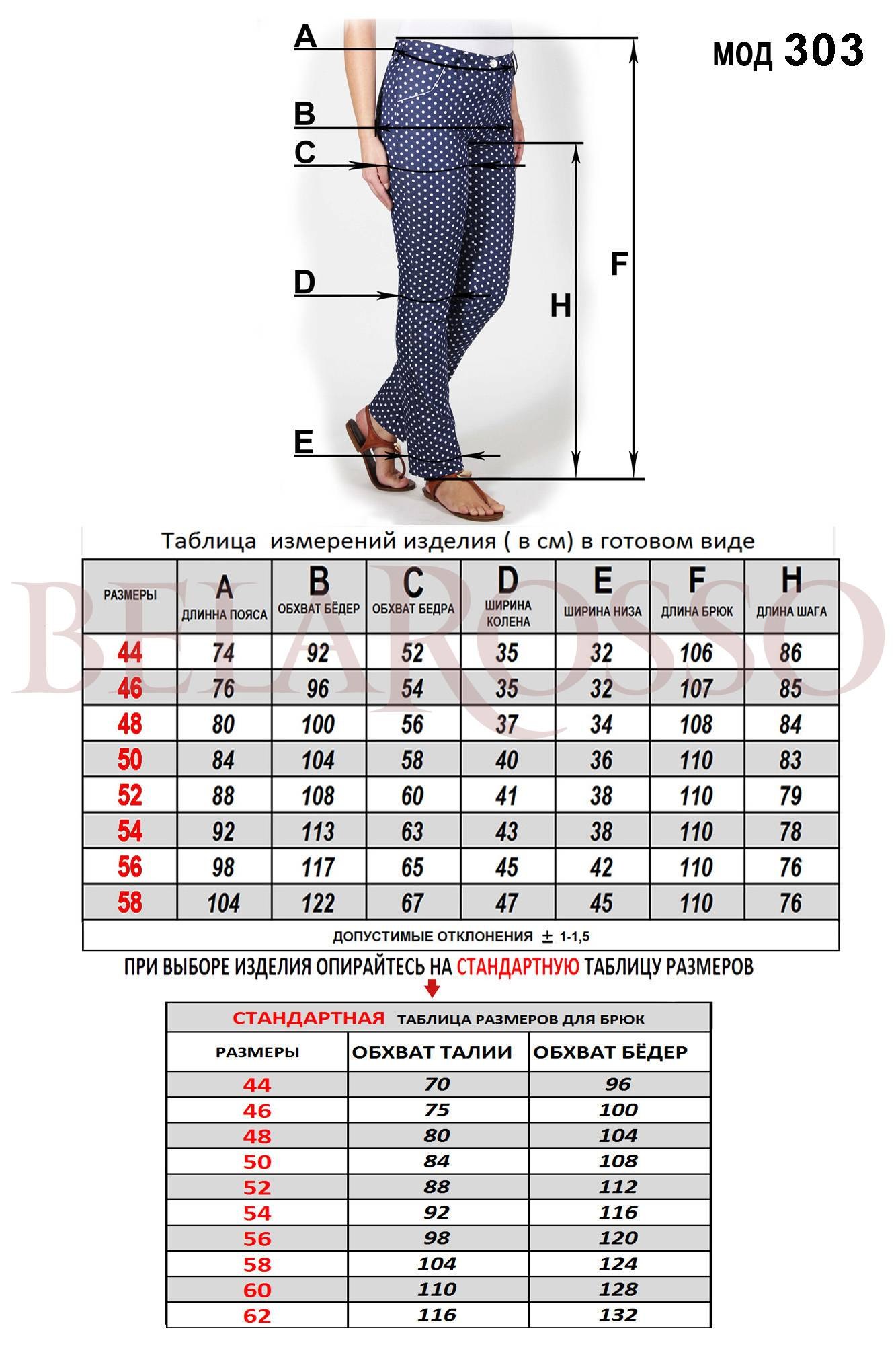 Размерный ряд женской брюки 46