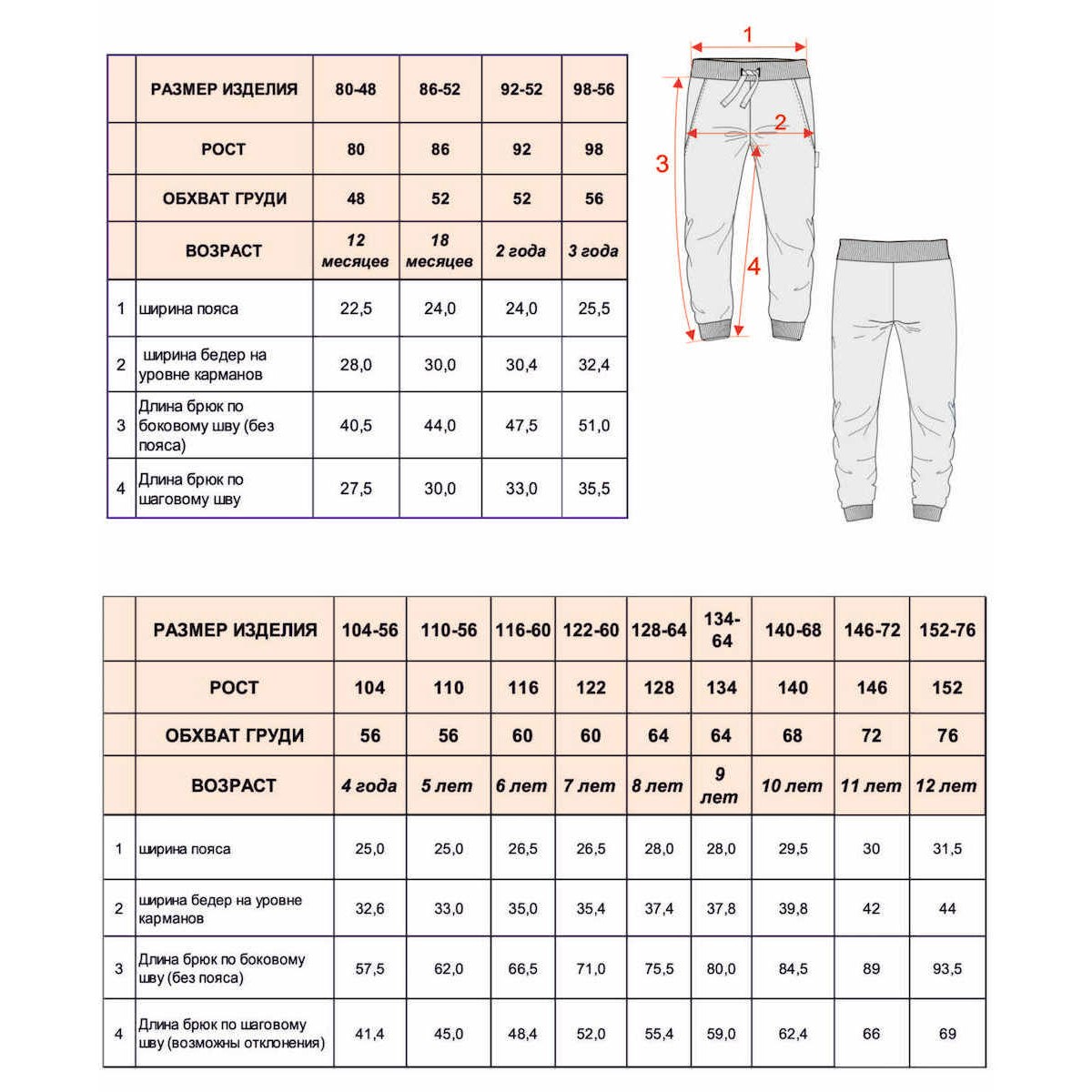 Размеры штанов на мальчика 3 года