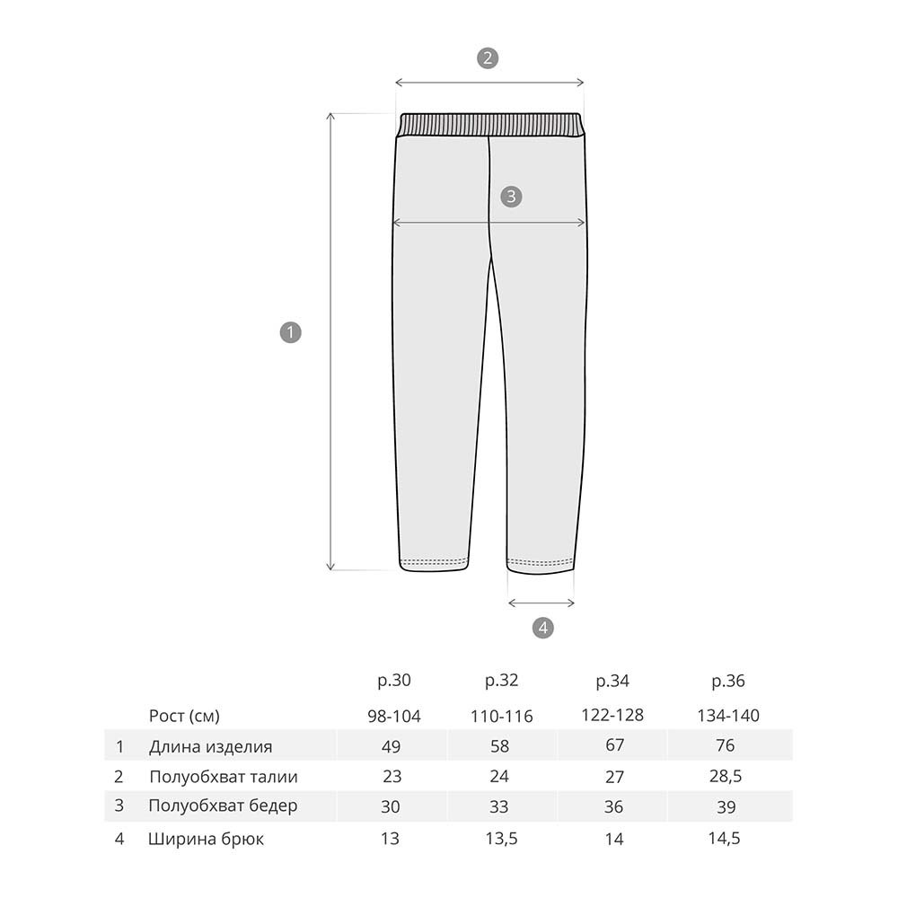 Размерная сетка брюки 86