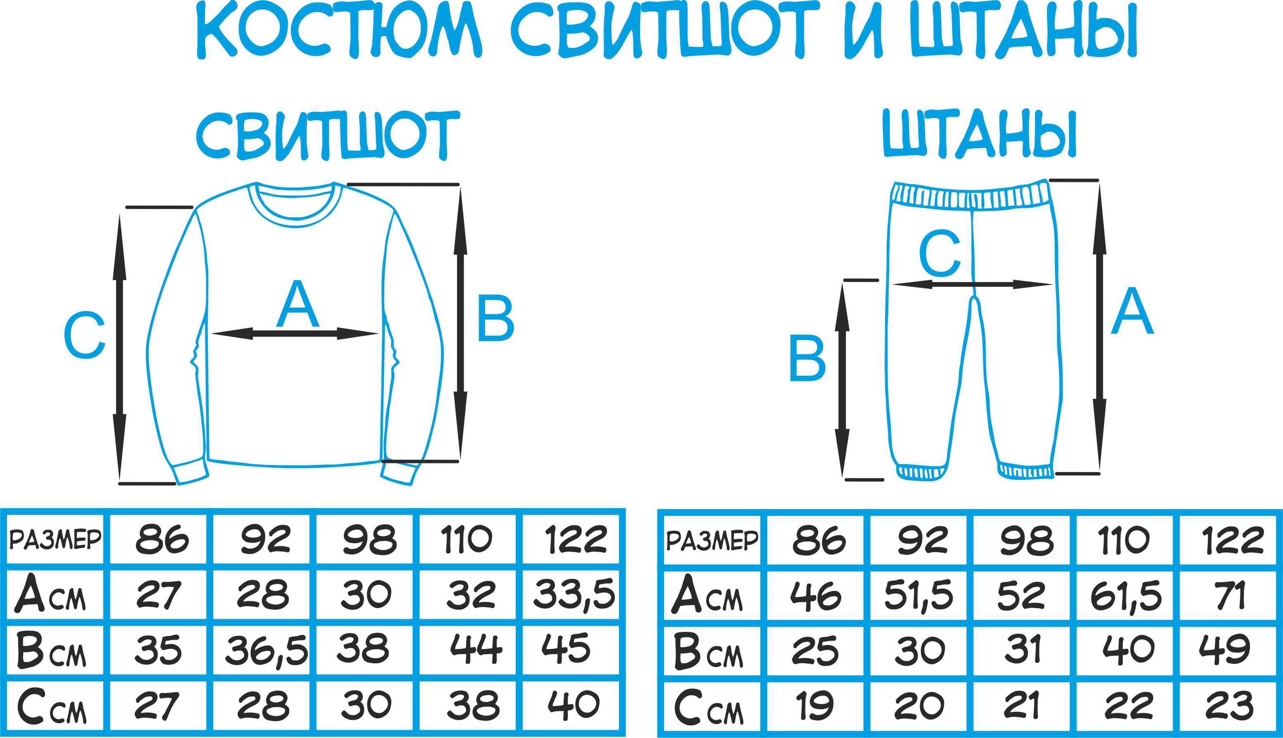 Таблица размеров штанов для мальчиков