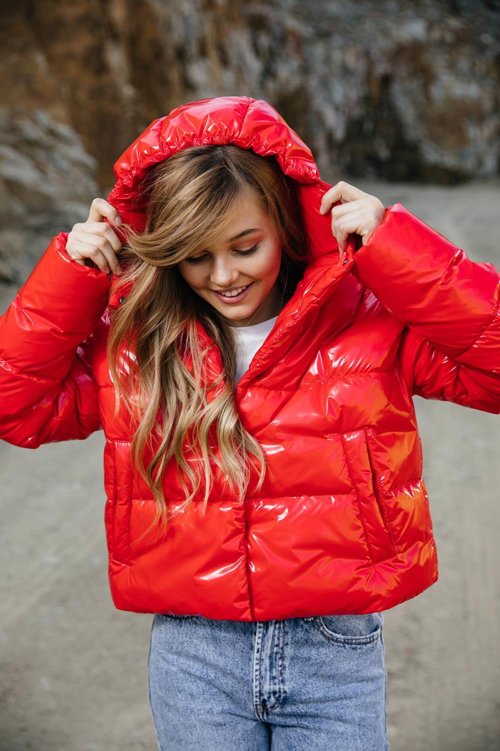 Красный пуховик
