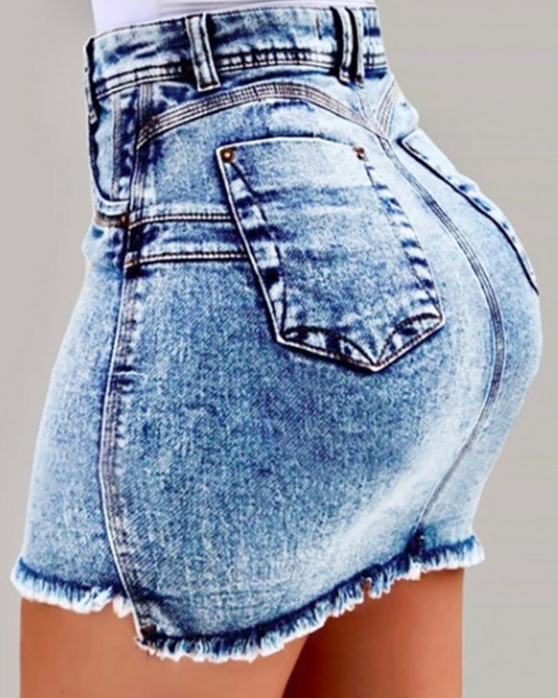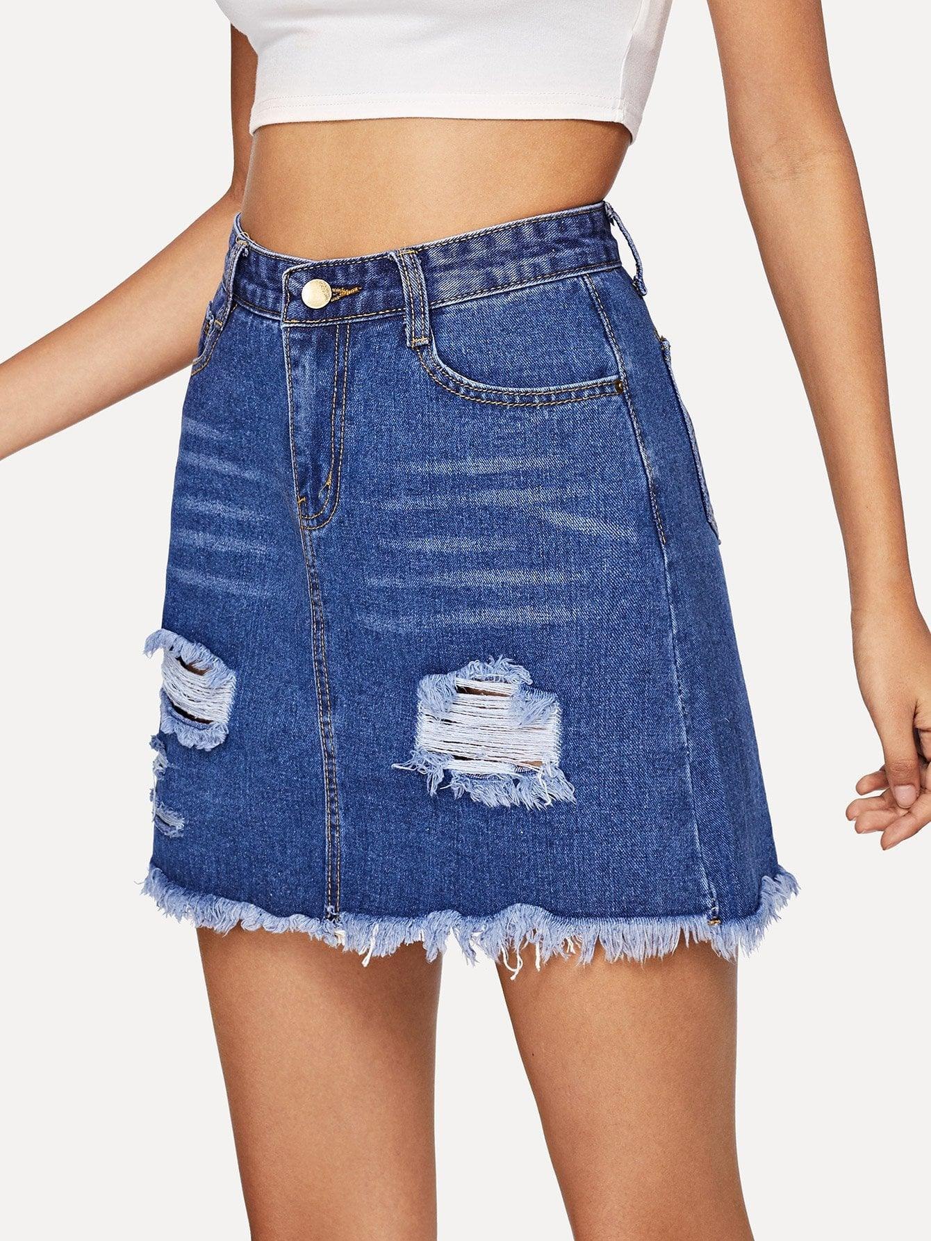 Рваная джинсовая юбка
