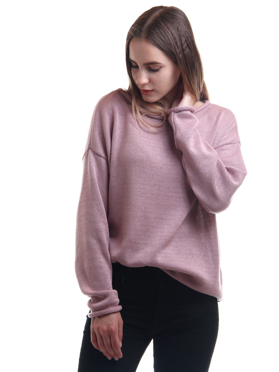 Вязаный свитер женский модный розовый