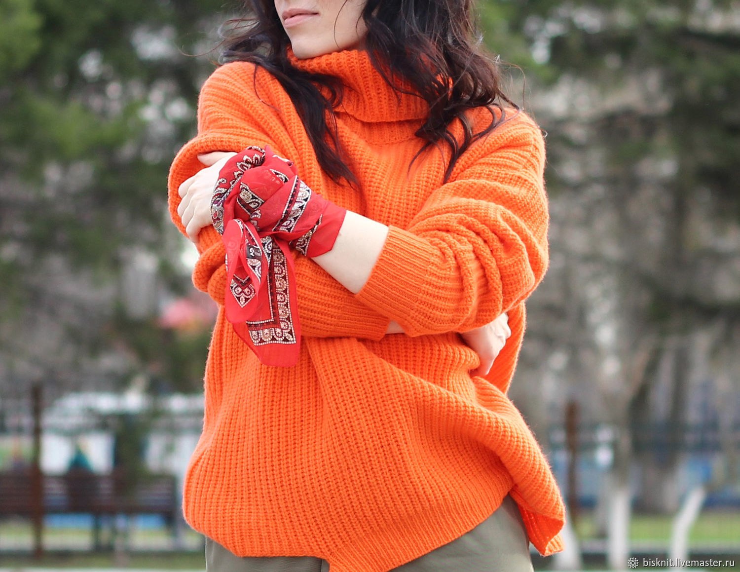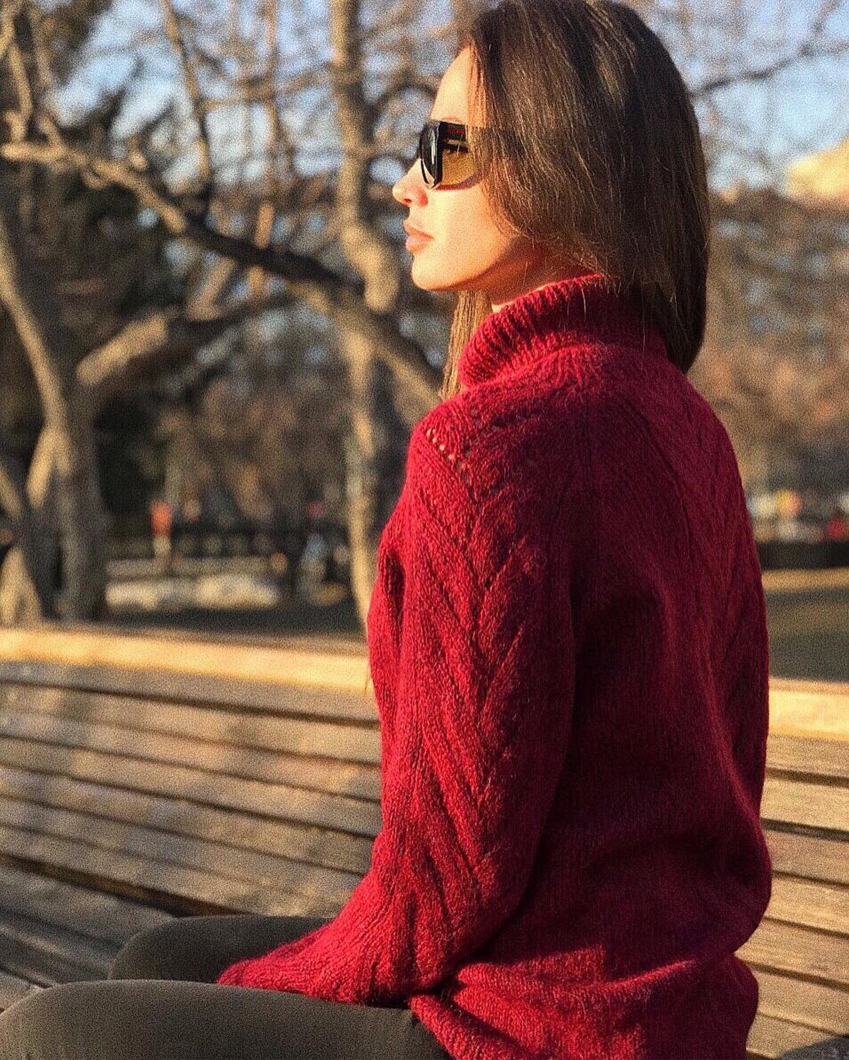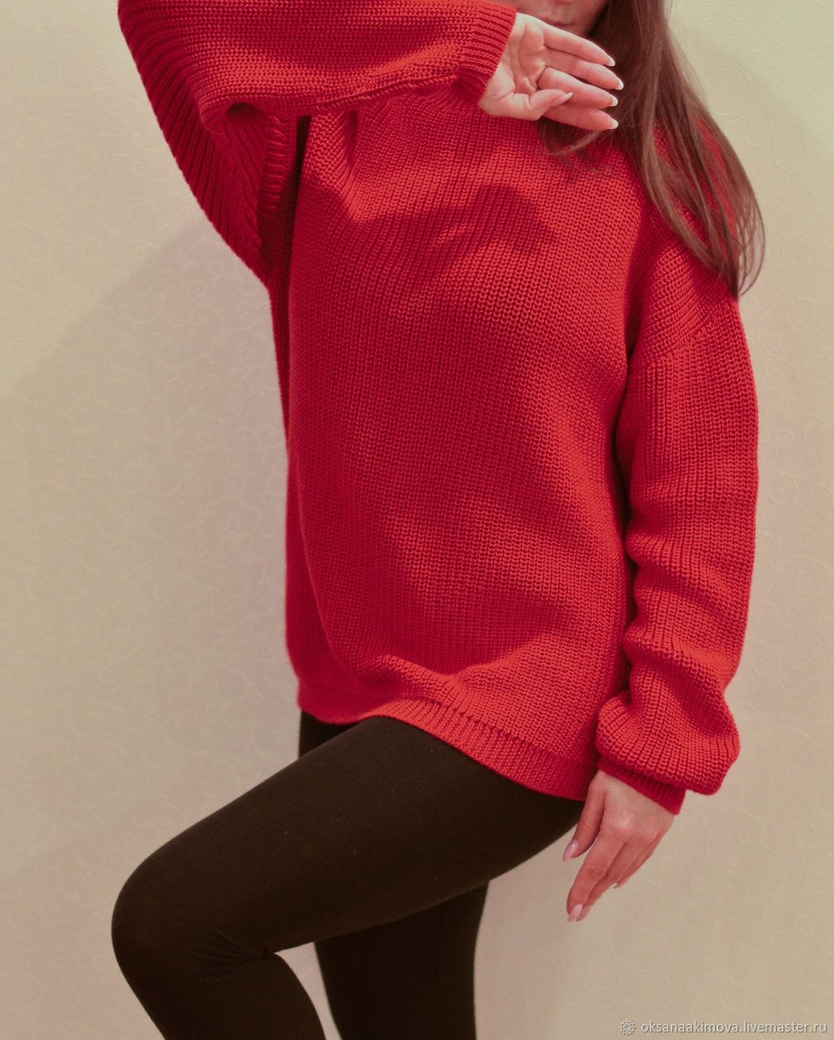 Красный вязаный свитер женский