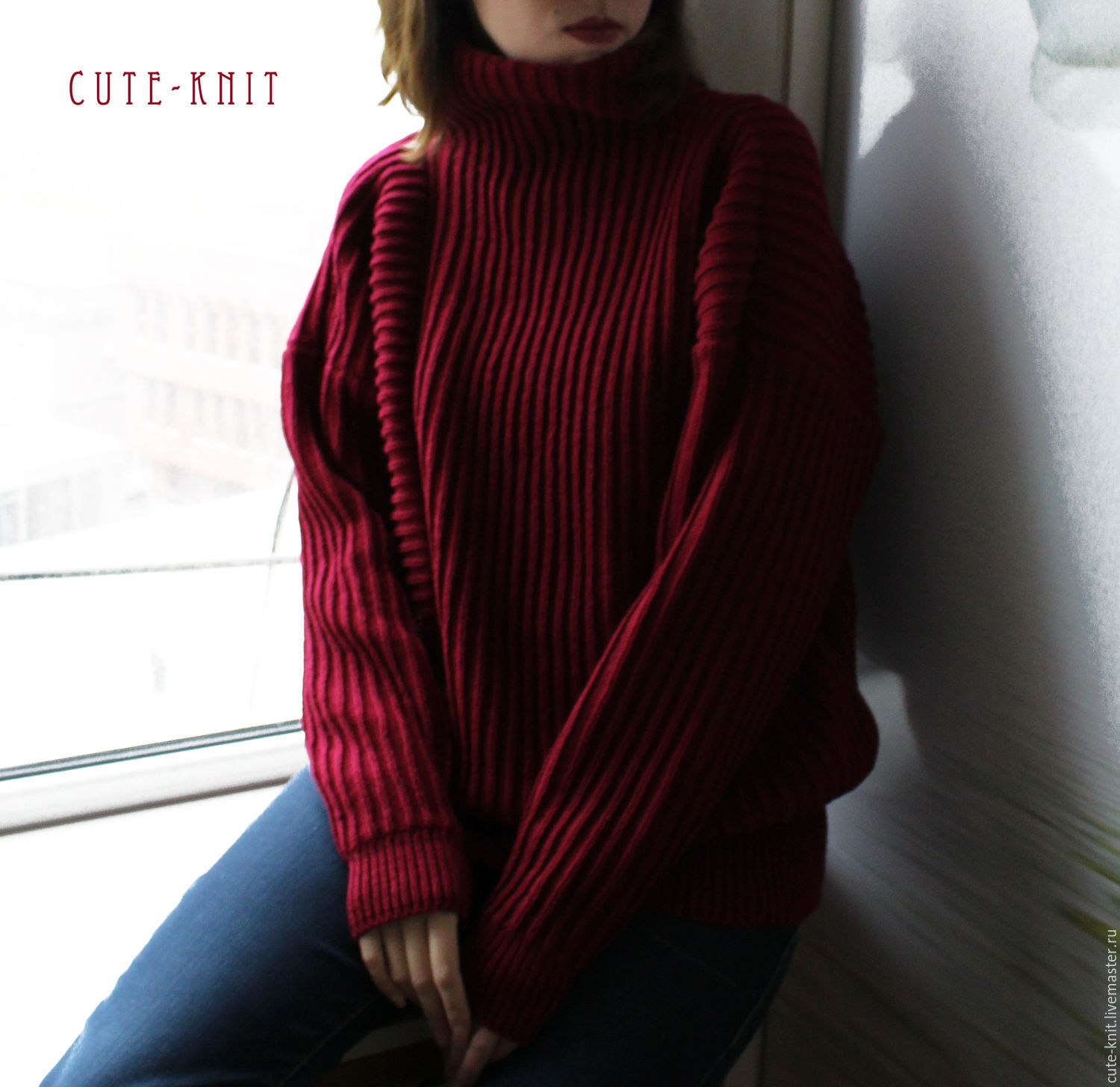 Бордовый свитер женский