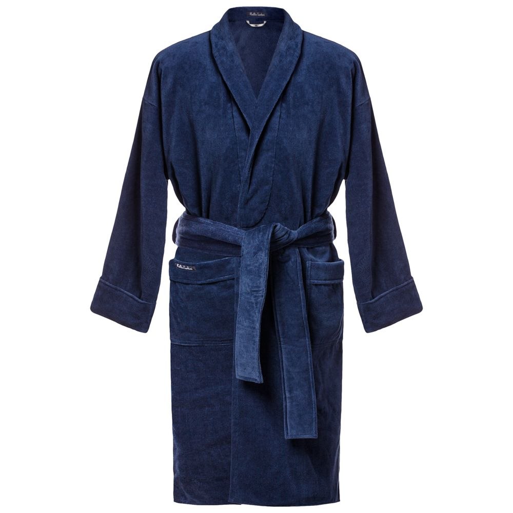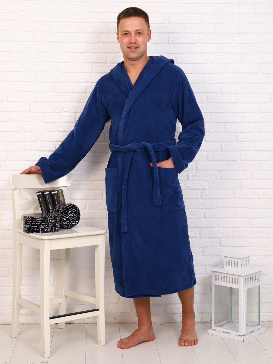 Вафельный халат чемпион мужской синий, 64-66